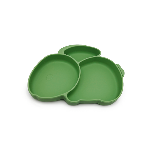 Plato en Forma de Dinosaurio de Silicon con 3 Divisiones | Olive Green