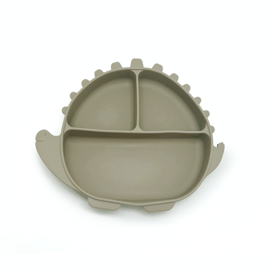 Plato en Forma de Dinosaurio de Silicon con 3 Divisiones | Olive Green