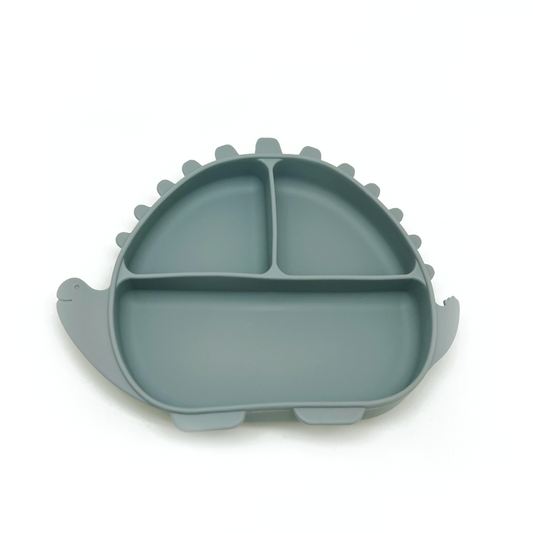 Plato en Forma de Dinosaurio de Silicon con 3 Divisiones | Smoke Gray